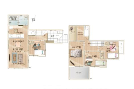 建物面積 98.95m2〜101.82m2 土地面積 103.80m2〜116.93m2