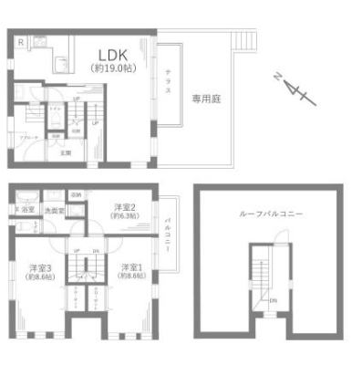 新規リフォーム物件、アフターサービス保証付き ルーフバルコニー、専用庭付きメゾネット住戸 専用使用権付き駐車場(1住戸に1台付)